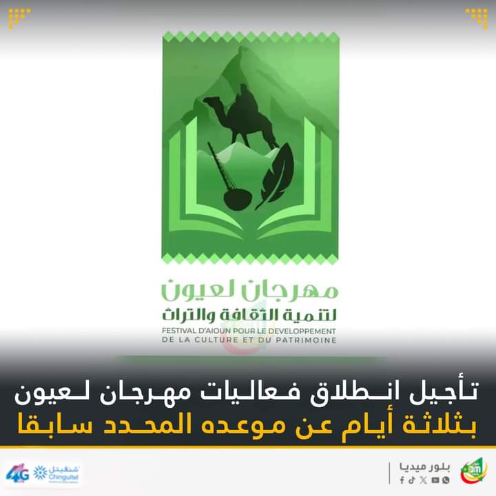 أعلنت إدارة مهرجان لعيون لتنمية الثقافة والتراث عن تأجيل موعد انطلاق فعاليات النسخة الثالثة من المهرجان لمدة ثلاثة ايام.