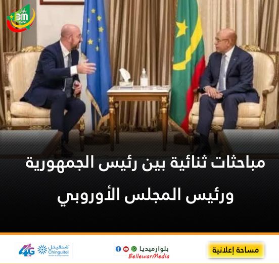 أجرى الرئيس محمد ولد الشيخ الغزواني، مساء اليوم الأحد، جلسة مباحثات مع رئيس المجلس الأوروبي شارل ميشل، الذي بدأ زيارة لموريتانيا، تدوم يومين.