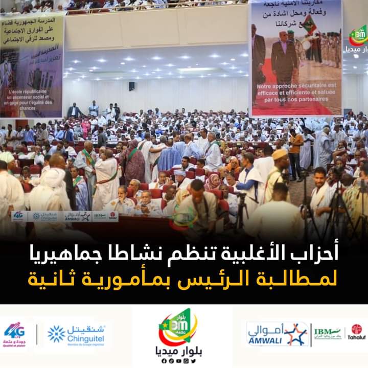 دعت أحزاب الأغلبية، خلال نشاط جماهيري، نظمته مساء أمس الجمعة، بقصر المؤتمرات في نواكشوط، إلى ترشح الرئيس محمد ولد الشيخ الغزواني لمأمورية ثانية.