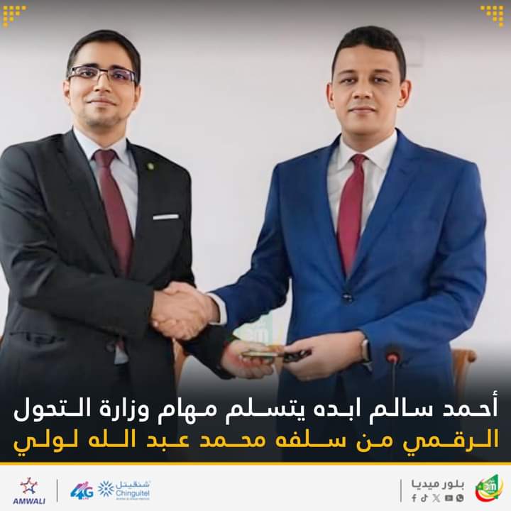 تسلم أمس الثلاثاء، الوزير المهندس أحمد سالم ابده، مهام وازرة التحول الرقمي وعصرنة الإدارة من سلفه، الوزير محمد عبد الله ولد لولي الذي تولى هو الآخر وزارة تمكين الشباب والرياضة والخدمة المدنية.