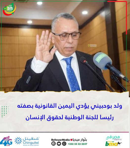 أدى الأستاذ أحمد سالم ولد بوحبيني، رئيس اللجنة الوطنية لحقوق الإنسان، اليوم الثلاثاء بالمحكمة العليا في انواكشوط أمام رئيس المحكمة السيد الحسين ولد الناجي، اليمين القانونية بصفته رئيسا للجنة الوطنية لحقوق الإنسان.
