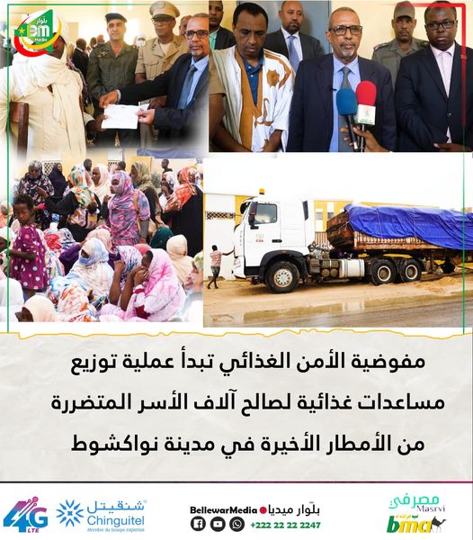 وقد سلم المفوض المساعد ووالي نواكشوط الشمالية، وعمدة دار النعيم، والسلطات الإدارية والأمنية في الولاية أوصالا لمستفيدين، إيذانا ببدء عملية توزيع هذه المساعدات على المواطنين الذين تضرروا من الأمطار الأخيرة في نواكشوط.