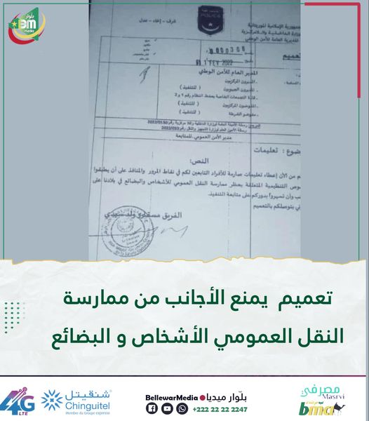 وكانت السلطات قد اتخذت -في وقت سابق- قرارا يقضي بمنع الأجانب من ممارسة النقل العمومي في موريتانيا كما هو الحال في بعض دول الجوار.