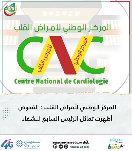 إدارة المركز الوطني لأمراض القلب تود إطلاع الراي العام على تحسن حالة الرئيس السابق محمد ولدعبد العزيز واستجابته للعلاج الذى يخضع له فى المركز وبفضل الله اظهرت سلسلة تحاليل وفحوصات مراقبة اجريت له يومي الاربعاء والخميس استقرار وضعيته وتماثله للشفاء