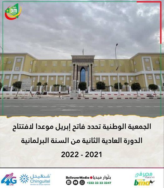 أعلنت الجمعية الوطنية اليوم الأربعاء، أن يوم الجمعة المقبل فاتح أبريل سيكون موعدا لافتتاح الدورة العادية الثانية من السنة البرلمانية 2021 – 2022.