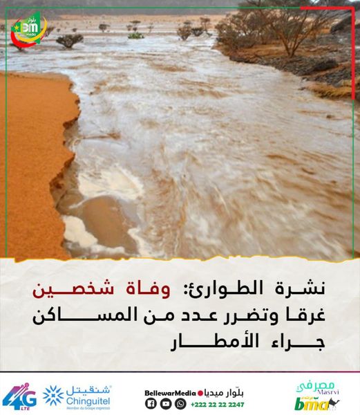 أعلنت اللجنة الفنية المكلفة بمتابعة أعمال اللجنة الوزارية الخاصة بتسيير الطوارئ، اليوم الجمعة، وفاة شخصين غرقا بكل من مقاطعتي مقامة ومونكل بولاية غورغول، وتسجيل خسائر مادية في مقاطعة باسكنو بولاية الحوض الشرقي جراء الأمطار الأخيرة.