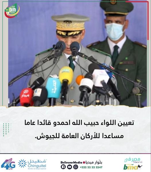 [ad_1] أعلنت رئاسة الجمهورية أنه بموجب مرسوم صادر اليوم الخميس تم تعيين اللواء حبيب الله احمدو قائدا عاما مساعدا للأركان العامة للجيوش. [ad_2] Source