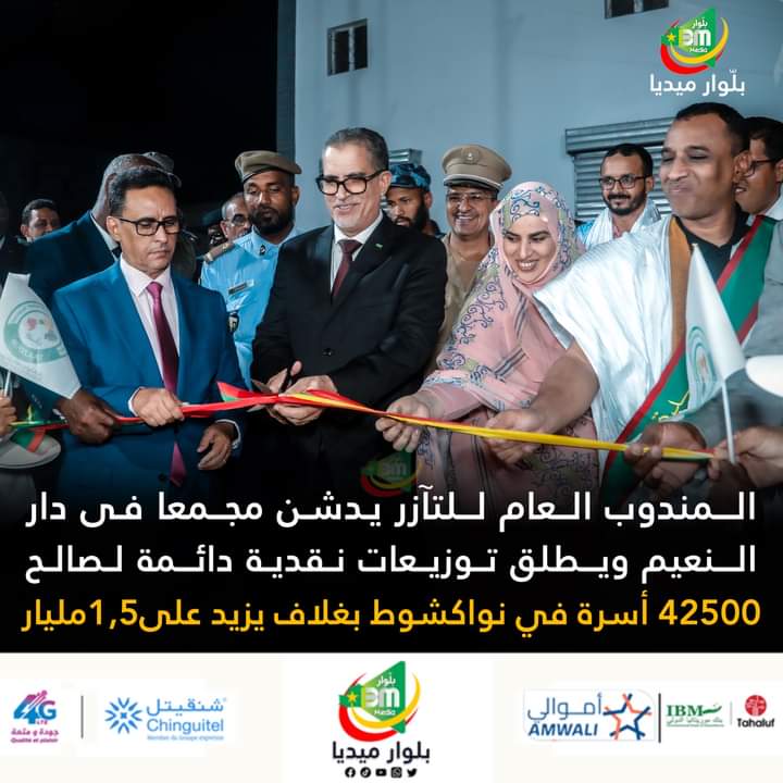 أمندوب العام للتآزر يدشن مجمعا تجاريا في دار النعيم ويطلق توزيعات نقدية دائمة لصالح 42500 أسرة في نواكشوط بغلاف يزيد على1,5مليار.