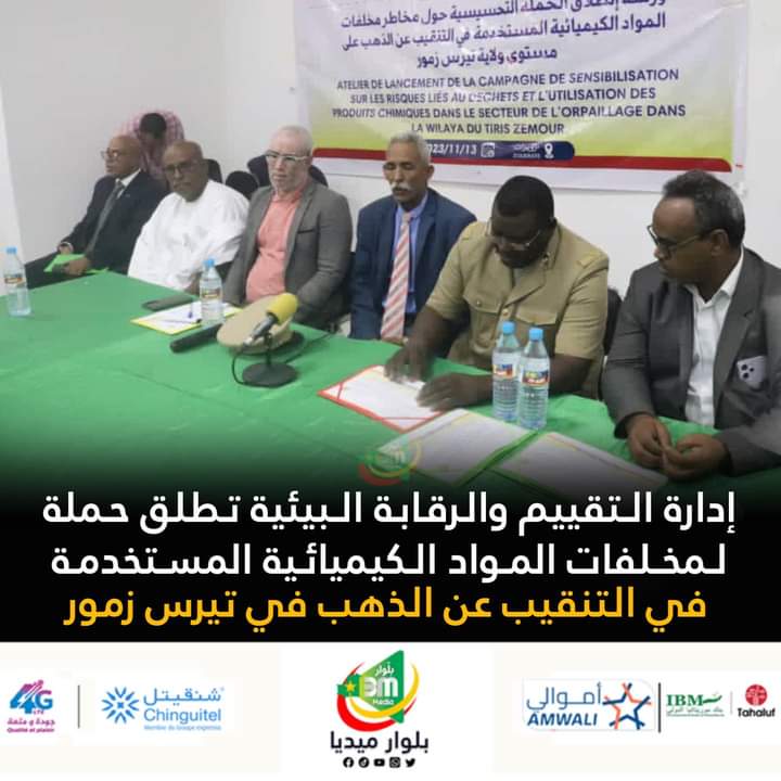 أطلقت إدارة التقييم والرقابة البيئية التابعة لوزارة البيئية والتنمية المستدامة أمس الإثنين من مدينة ازويرات و رشة تحسيسية حول مخاطر مخلفات المواد الكيميائية المستخدمة في التنقيب عن الذهب على مستوى ولاية تيرس زمور تدوم شهرين.