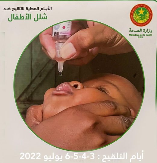 في إطار جهود الوقاية من الأمراض الفتاكة، ستطلق وزارة الصحة في بلادنا ابتداء من 03/07/2022 أياما محلية للتلقيح ضد شلل الأطفال من ( 0 – 5 سنوات ) في ولايات انواكشوط ومقاطعة واد الناقة وستنتشر فرق التلقيح لتقديم اللقاح داخل المنازل، وتدعو الوزارة كافة المواطنين إلى التعاون معها من أجل صحة أطفالنا .