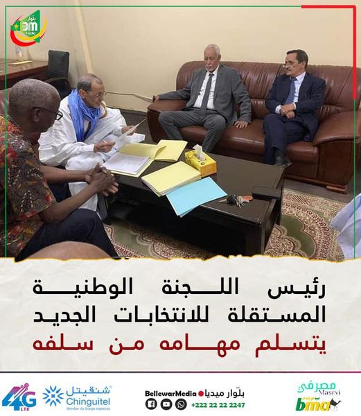تسلم رئيس اللجنة الوطنية المستقلة للانتخابات الجديد الداه ولد عبد الجليل، اليوم الثلاثاء، مهامه من سلفه الرئيس السابق محمد فال ولد بلال، وذلك بحضور نائب رئيس اللجنة محمد الأمين ولد داهي.