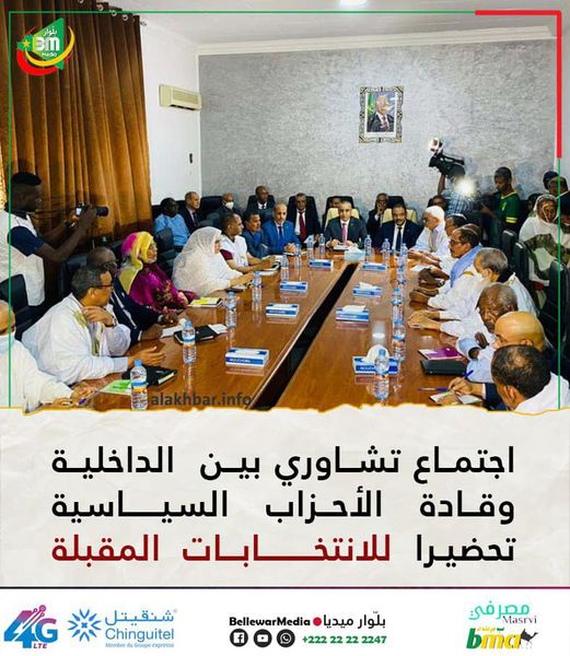 ترأس وزير الداخلية محمد أحمد ولد محمد الأمين، اليوم، اجتماعا مع رؤساء أحزاب سياسية في البلاد، في إطار التحضير التشاركي للانتخابات التشريعية والجهوية والبلدية المقبلة.