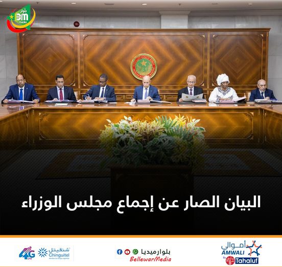 اجتمع مجلس الوزراء اليوم الأربعاء (12 يوليو 2023) تحت رئاسة صاحب الفخامة السيد محمد ولد الشيخ الغزواني، رئيس الجمهورية.