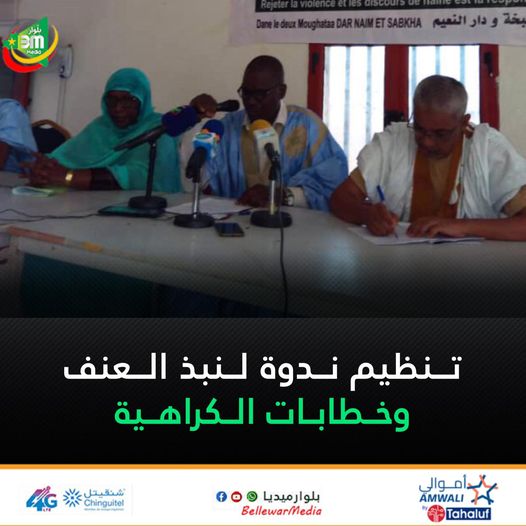احتضنت بلدية دار النعيم أمس السبت، ندوة حول نبذ العنف وخطابات الكراهية، مظمة بالتعاون بين اللجنة العليا لاحتفالية نواكشوط عاصمة للثقافة في العالم الإسلامي لعام 2023 وجمعية الرفاه التعليم ومناصرة القصر.