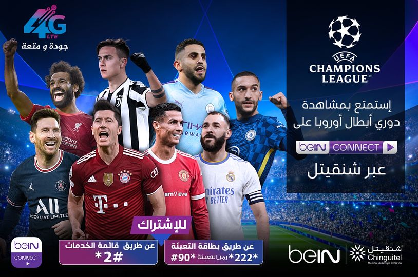 Profitez des matchs de la Ligue des champions de l’UEFA sur beINCONNECT via Chinguitel et bénéficiez d’internet en double (300%) pour tous les usages