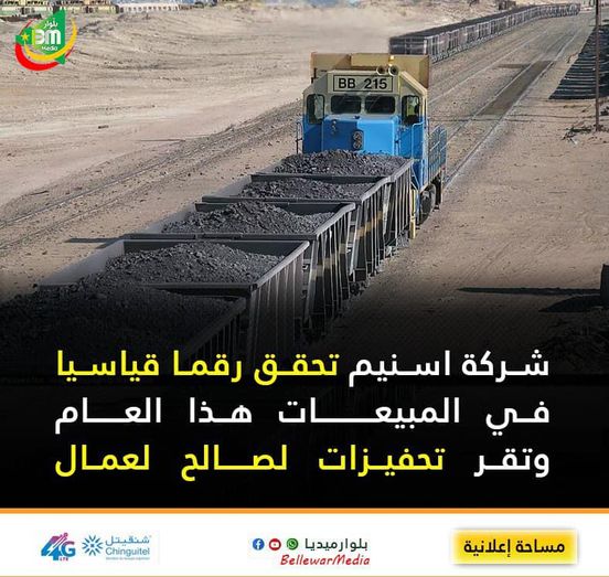 مليون طن لعام 2016.وأعلنت “اسنيم”، خلال اجتماع عقده مسؤولون بالشركة،الجمعة، مع مناديب العمال في مدينتي انواذيبو .ازويرات، عن تفحيزات لصالح العمال تتمثل في احتساب علاوة الإنتاج، لهذا الشهر، بنفس النسب التي تم اعتمادها، في شهر ديسمبر، العام الماضي، مع زيادة 20% من الراتب القاعدي، ودفع هذه العلاوة تزامنا مع علاوة شهر نوفمبر، على راتب الشهر الحالي.
