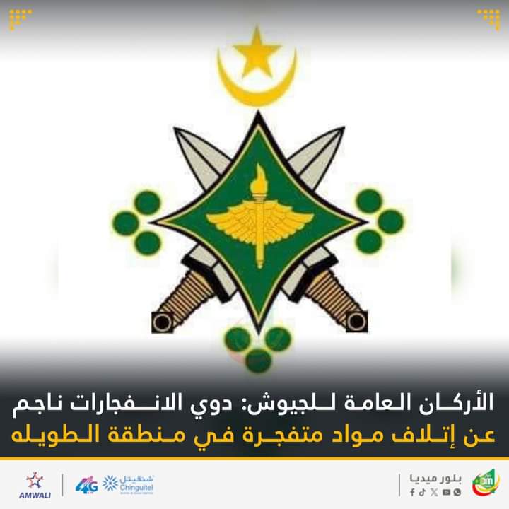 قالت الأركان العامة للجيوش إن دوي الانفجارات الذي سمعه سكان مدينة نواكشوط، ناجم عن إتلاف مواد متفجرة في منطقة الطويله مشيرة إلى أن هذه العملية سوف تستمر على مدى الأسابيع الثلاثة القادمة.