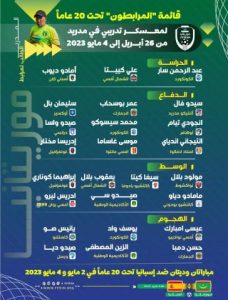 أعلن مدرب منتخب شباب المرابطون تحت 20 عاما، الطالب لمرابط، عن قائمة اللاعبين التي ستخوض معسكرا تدريبيا في العاصمة الإسبانية مدريد.