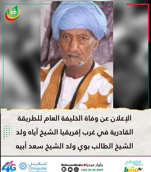 الإعلان عن وفاة الخليفة العام للطريقة القادرية في غرب إفريقيا الشيخ آياه ولد الشيخ الطالب بويه رحمه الله