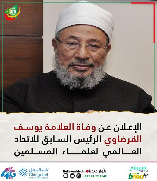 الإعلان عن وفاة العلامة يوسف القرضاوي الرئيس السابق للاتحاد العالمي لعلماء المسل…