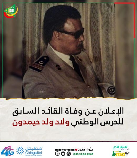 أعلن فجر اليوم، في العاصمة نواكشوط، عن وفاة القائد السابق للحرس الوطني ولاد ولد حيمدون.