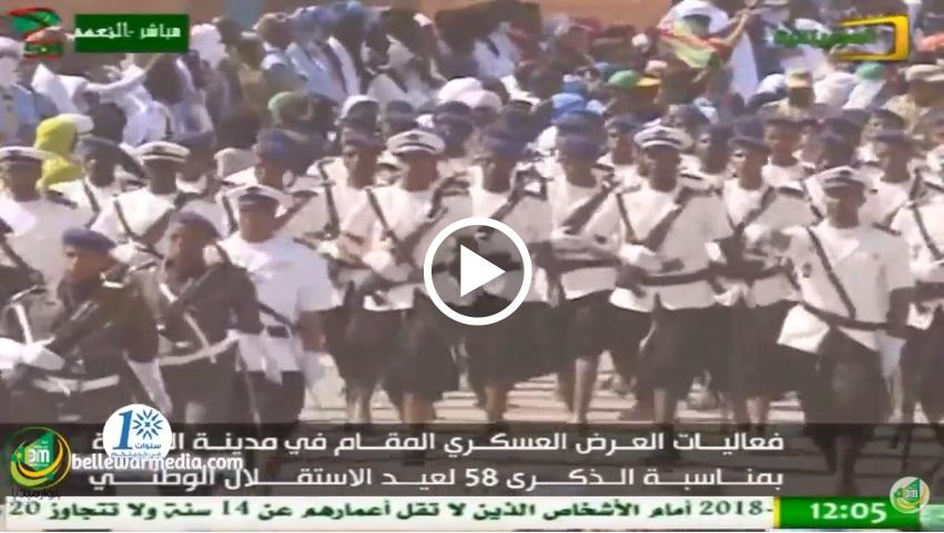 الاستعراض الراجل لوحدات من الحرس الوطني والدرك الوطني في العرض العسكري في مدينة النعمة