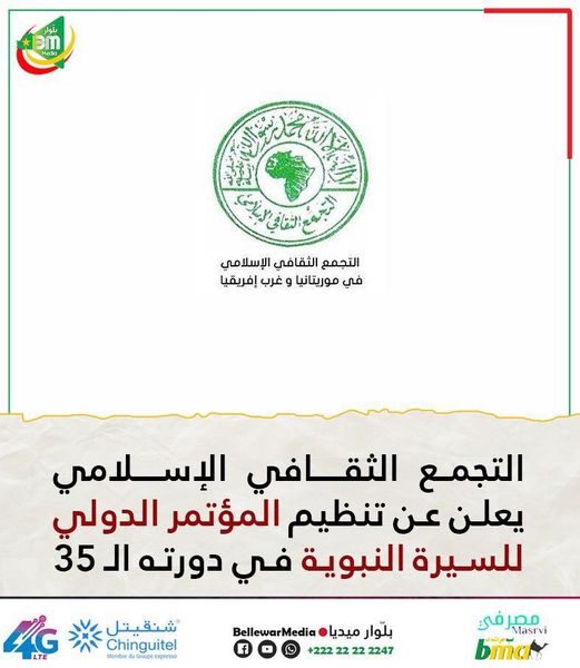 أعلن التجمع الثقافي الإسلامي بموريتانيا وغرب إفريقيا عن تنظيم المؤتمر الدولي للسيرة النبوية في دورته ال 35 ومؤتمر هيئة علماء المسلمين تحت عنوان “القيم الأخلاقية في السيرة المحمدية وأثرها في نشر قيم السلام حول العالم ” ، وذلك بالتعاون مع رابطة العالم الإسلامي.
