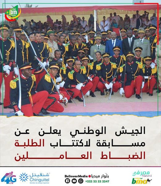 أعلن المكتب الثالث بالأركان العامة للجيوش، اليوم الثلاثاء، عن مسابقة لاكتتاب الطلبة الضباط العاملين، مفتوحة أمام الشباب الموريتانيين.