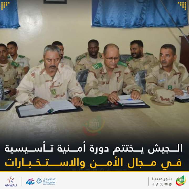 اختتم الجيش الموريتاني، أمس الجمعه، بإشراف من العقيد الحسن بمب مگت، قائد فرقة الاستخبارات والأمن العسكري، دورة أمنية تأسيسية في مجال الأمن والاستخبارات لصالح ضباط أمن التشكيلات.