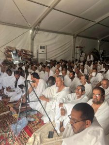 ورفع الحجاج أصواتهم بالتلبية والتكبير والتهليل حامدين الله جل وعلا على ما من به عليهم من نعمة أداء خامس أركان الدين الحنيف، وأدوا صلاة الظهر والعصر جمع تقديم، وتابعوا خطبة هذا اليوم الأغر بمخيم الحجاج الموريتانيين بعرفه التي ركز فيها فضيلة الشيخ ولد صالح الأمين العام لهيئة علماء موريتانيا على ضرورة الإخلاص في هذا اليوم لله عز وجل واغتنام هذه الفرصة.