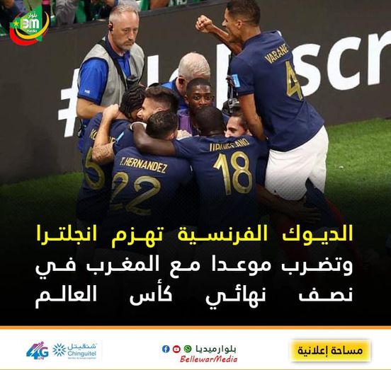 الديوك الفرنسية تهزم انجلترا وتضرب موعدا مع المغرب في نصف نهائي كأس العالم