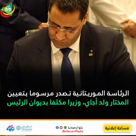 أصدرت الرئاسة الموريتانية مرسوما تم بموجبه تعيين المختار ولد أجاي، وزيرا مكلفا بديوان رئيس الجمهورية.