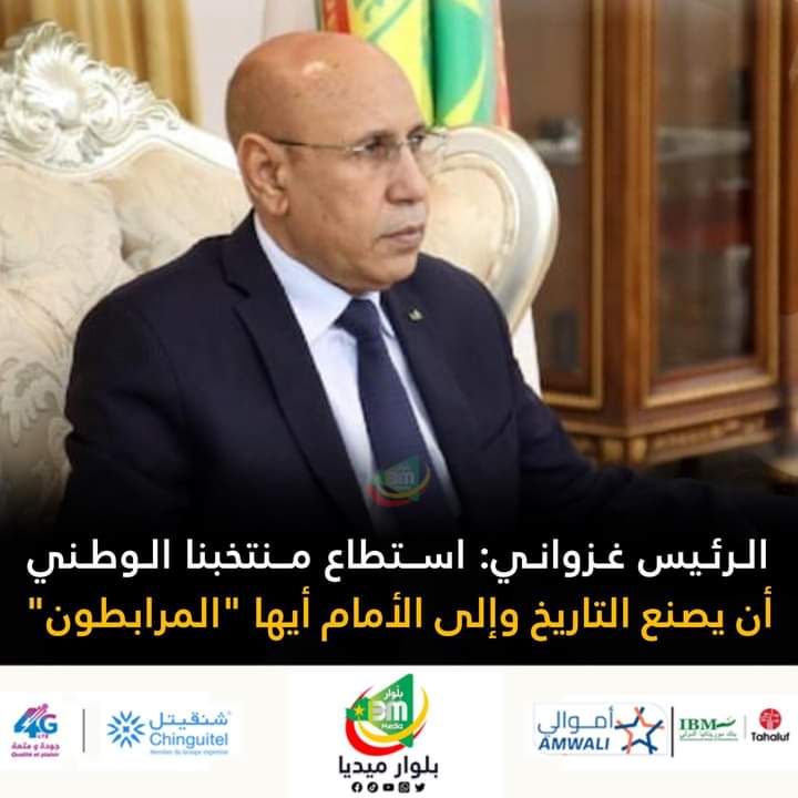 وأضاف الرئيس غزواني في تغريدة نشرها عبر حسابه على موقع إكس: “وذلك بأدائه البطولي و الجماعي في كل مبارياته. كل الدعم والمؤازرة لكم وإلى الأمام أيها “المرابطون”.