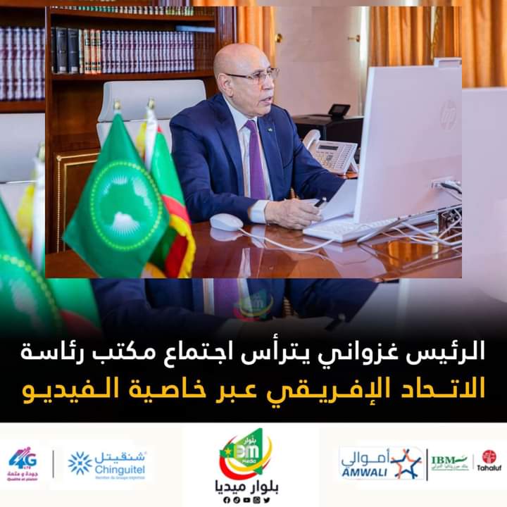 اجتمع مكتب رئاسة الاتحاد الإفريقي، اليوم الأربعاء، عبر خاصية الفيديو كونفرانس، برئاسة رئيس الجمهورية محمد ولد الشيخ الغزواني رئيس الاتحاد الإفريقي.