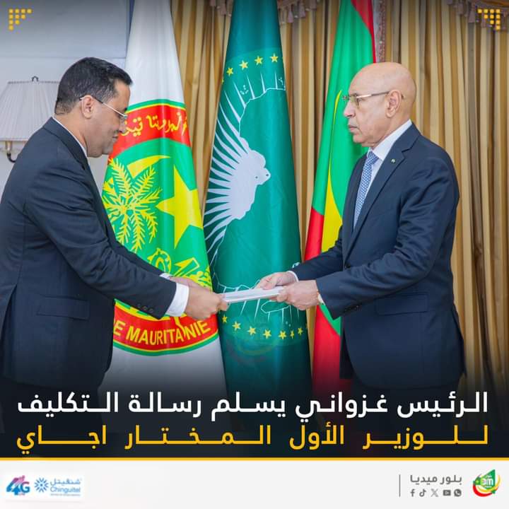 سلّم رئيس الجمهورية السيد محمد ولد الشيخ الغزواني، اليوم الخميس بالقصر الرئاسي، رسالة التكليف للوزير الأول السيد المختار ولد أجاي.