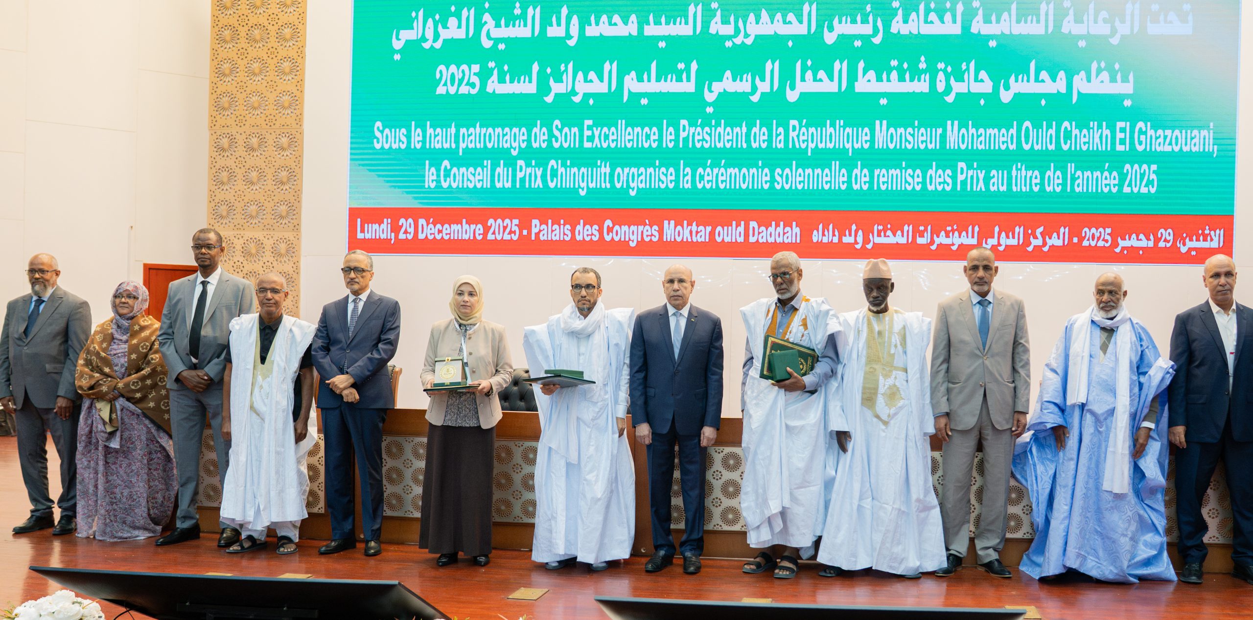 أشرف رئيس الجمهورية، محمد ولد الشيخ الغزواني، على حفل تسليم جائزة شنقيط لسنة 2025، وذلك خلال مراسم رسمية خُصّصت لتكريم الفائزين في مجالات البحث العلمي والإبداع الثقافي.