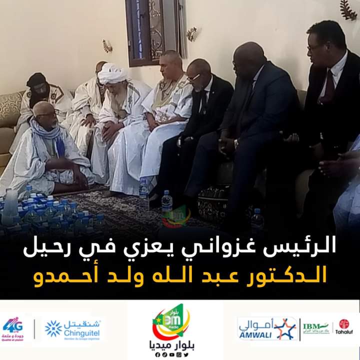 أوفد رئيس الجمهورية محمد ولد الشيخ الغزواني، المستشار بالرئاسة، أحمد ولد النيني، و والي ولاية نواكشوط الجنوبية انيانغ جبريل، ومجموعة من السلطات الأمنية والعسكرية بالولاية لتقديم واجب العزاء في المرحوم الدكتور عبد الله ولد احمدو الذي توفي أول امس بمكة المكرمة.