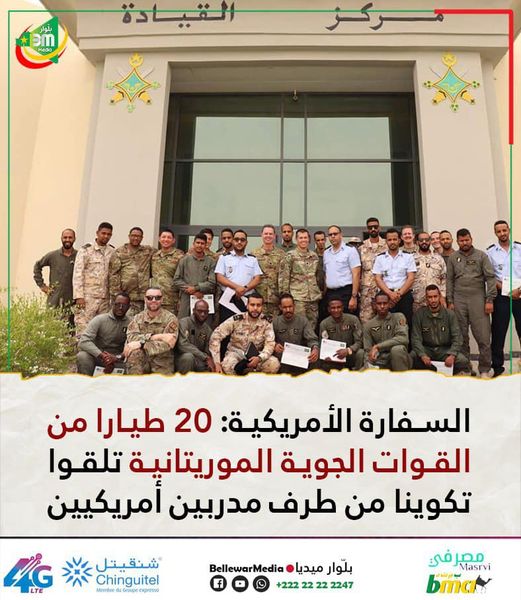 قالت السفارة الأمريكية في نواكشوط إن 20 طيارا من القوات الجوية الوطنية، تلقوا تكوينا من طرف مدربين من القوات الجوية الأمريكية.