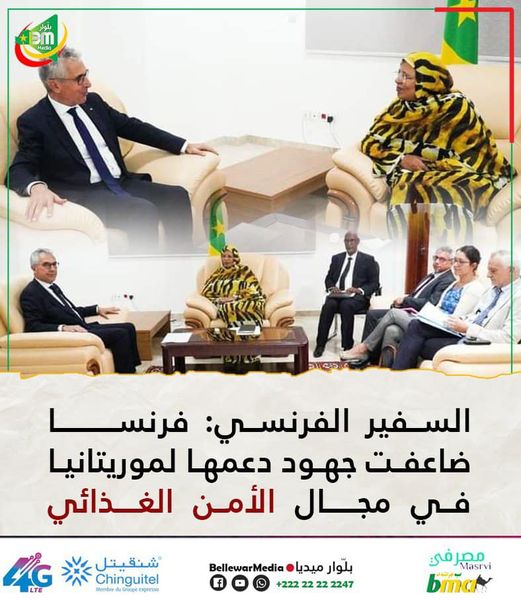 من جانبه أطلع السفير الفرنسي المفوضة على جهود فرنسا لدعم موريتانيا، خاصة في مجال الأمن الغذائي، حيث أبرز أن فرنسا نظرا للأزمات الغذائية التي سببتها موجات الجفاف وفاقمت من تداعياتها الحرب الروسية – الأكرانية، ضاعفت جهود دعمها لموريتانيا في مجال الأمن الغذائي.