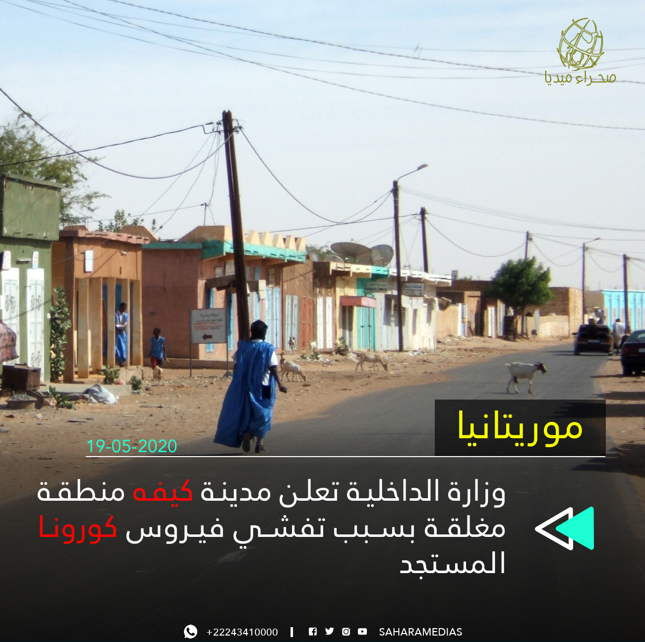 أعلنت السلطات الموريتانية، مساء اليوم الثلاثاء، إغلاق مدينة كيفه، شرقي البلاد، وذلك بعد تسجيل 19 إصابة مؤكدة بفيروس «كورونا» فيها خلال الأيام الأخيرة.