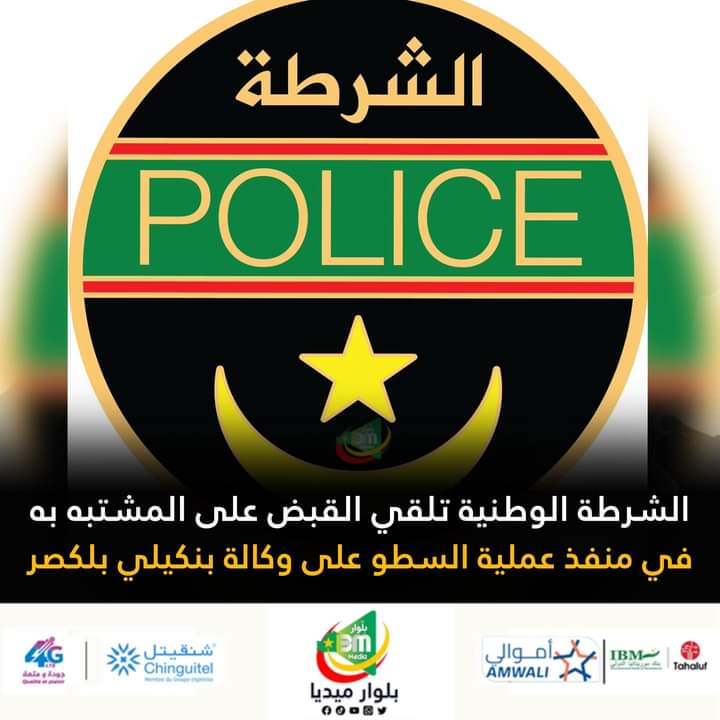 وأكدت الشرطة أنه مباشرة “بعد البحث والتحري من طرق فرقة مختصة بالإدارة الجهوية. لأمن نواكشوط الغربية تم إلقاء القبض على المشتبه به في تنفيذ عملية السطو عند الساعة الحادية عشر ليلا من نفس اليوم ومعه المبلغ الذي أخذ في عملية السطو المذكورة بدون نقصان”