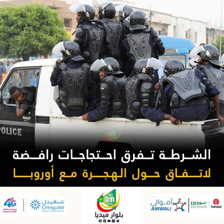فرقت الشرطة الموريتانية، اليوم الأربعاء ، وقفة احتجاجية رافضة لتوقيع مشروع اتفاقية بين موريتانيا والاتحاد الأوروبي حول الهجرة.