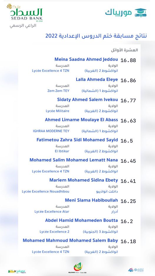 العشرة الأوائل في مسابقة نتائج مسابقة ختم الدروس الإعدادية (بريفة) 2022 النتائ…