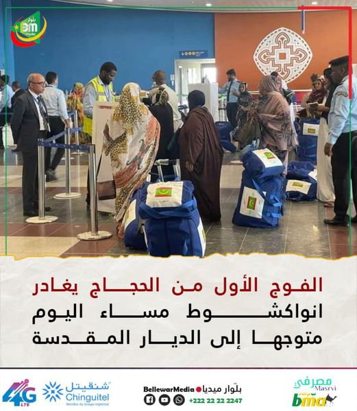 وكان في توديع الفوج المكون من 420 حاجا في مطار نواكشوط الدولي (أم التونسي) وزير الشؤون الإسلامية الداه ولد سيدي ولد أعمر طالب، والأمين العام للوزارة وعدد من أطر القطاع.