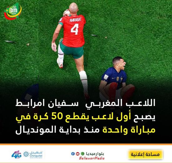 اللاعب المغربي سفيان امرابط يصبح أول لاعب يقطع 50 كرة في مباراة واحدة منذ بداية المونديال