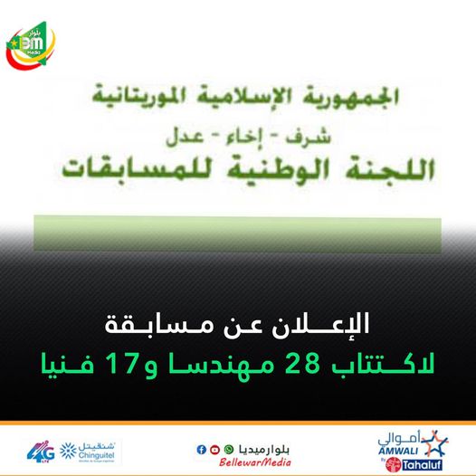 وأكدت على أن المسابقة مفتوحة أمام الأشخاص الحاصلين على الجنسية الموريتانية، الذين لا تقل أعمارهم عن 18 سنة ولا تزيد على 40 سنة من تاريخ فتح باب الترشح للمسابقة.