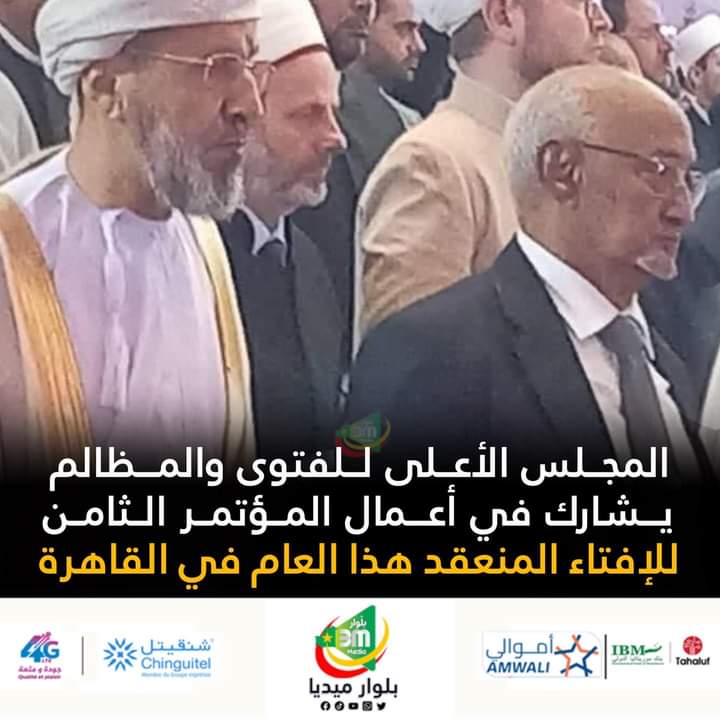 شارك رئيس المجلس الأعلى للفتوى والمظالم إسلمُ ولد سيد المصطف، أمس الأربعاء بالقاهرة، في فعاليات المؤتمر العالمي الثامن للإفتاء، الذي تعقده دار الإفتاء المصرية هذا العام تحت عنوان: “الفتوى وتحديات الألفية الثالثة”