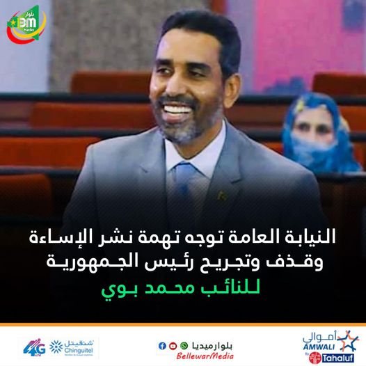 وجهت النيابة العامة بولاية نواكشوط الغربية تهمة نشر الإساءة وقذف وتجريح رئيس الجمهورية للنائب محمد بوي ولد الشيخ محمد فاضل.