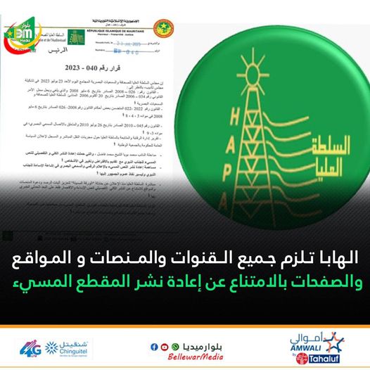 أصدرت السلطة العليا للصحافة والسمعيات البصرية (الهابا) قرارا بموجبه يتم منع “جميع القنوات والمنصات و المواقع والصفحات