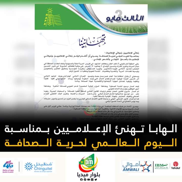 الهابا تهنئ الإعلاميين الموريتانيين بمناسبة اليوم العالمي لحرية الصحافة